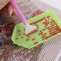Pour un travail confortable, on trouve 4 applicateurs de tailles différentes, une pince de précision, 3 plateaux de tri et un entonnoir pliable en silicone pour transvaser facilement les strass sans désordre. Les carrés de cire assurent une prise sûre des strass et la spatule de nivellement aide à obtenir un résultat parfaitement uniforme.