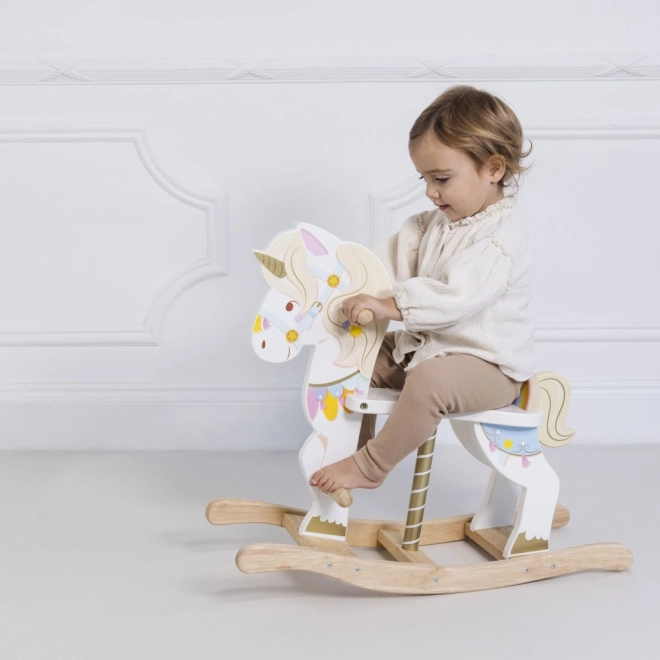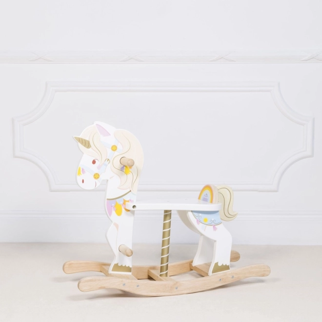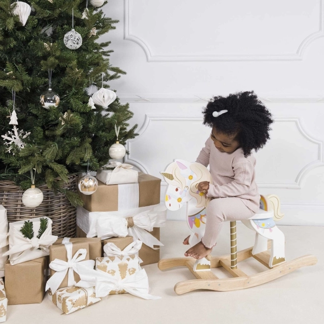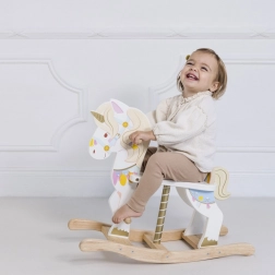 La licorne à bascule LE TOY VAN de la collection Petilou est un jouet classique dans une interprétation moderne. Grâce à sa base en bois robuste et à son ergonomie soignée, elle favorise un balancement naturel, développe la coordination, l’équilibre et la confiance dans le mouvement. Des détails colorés, une corne dorée et une expression adorable stimulent l’imagination et la joie de jouer.