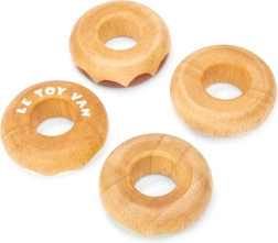 Ce set de donuts en bois de Le Toy Van est non seulement esthétiquement agréable, mais surtout sécurisé et fabriqué en bois massif. Chaque donut est délicatement arrondi pour un jeu sans risque et décoré de tons pastels avec différents motifs de vermicelles. Les peintures à base d’eau, utilisées pour les finitions manuelles, sont non toxiques et totalement sûres pour les enfants.