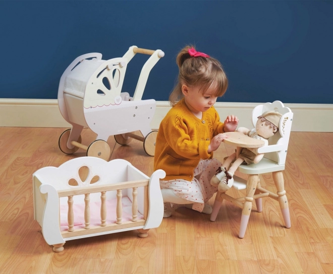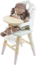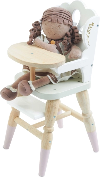 Chaise haute en bois pour poupées de Le Toy Van permet aux enfants de prendre soin de leurs jouets préférés de manière ludique. Fabriquée en bois de hévéa durable, sans utilisation de plastiques, ce qui en fait un choix écologique pour vos tout-petits.