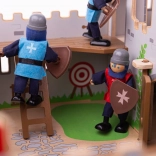 L’ensemble comprend 4 figurines en bois – deux chevaliers bleus et deux rouges avec boucliers et casques. Idéal pour créer ses propres histoires et batailles.