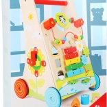 Le chariot de marche en bois Prairie fleurie est conçu pour aider les enfants à développer leurs compétences motrices et leur perception du monde qui les entoure. Il comprend :