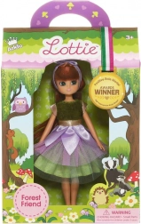 Entrez dans un monde enchanté avec la poupée Lottie Fée des bois. Sa robe à plusieurs couches dans des nuances de vert et de violet, son haut en velours et sa délicate jupe tutu rappelant des pétales font de chaque jeu une histoire pleine de fantaisie. Ses cheveux roux, ses yeux verts et ses ballerines dorées complètent le look de conte de fées.