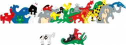 Il se compose de 26 pièces, chacune représentant un animal et portant un chiffre d'un côté et une lettre de l'alphabet de l'autre côté. Il encourage la motricité fine et développe la pensée créative.