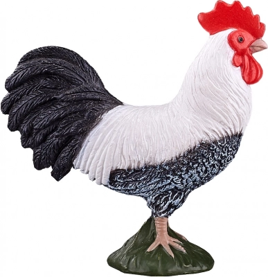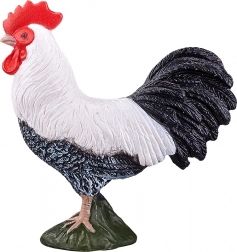 Plumage fidèlement sculpté, contraste noir et blanc et crête rouge pour un aspect authentique du coq.