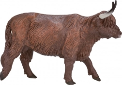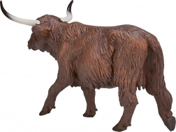 Modèle en plastique détaillé du Taureau des Highlands avec une texture de fourrure longue et des cornes marquantes.