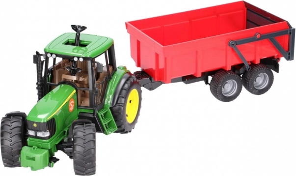 Le set tracteur JOHN DEERE avec benne basculante fonctionnelle offre aux enfants une expérience réaliste des travaux agricoles. Le tracteur est détaillé, avec capot ouvrant, essieu avant directionnel via un volant rallongé en cabine et pneus profilés marqués pour un rendu fidèle et des traces réalistes.