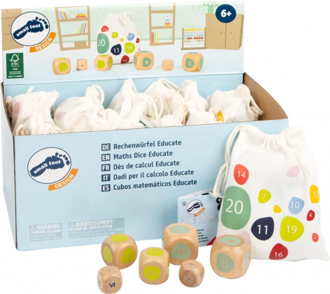 Nous vous présentons des dés mathématiques éducatifs, idéals pour s'exercer de façon ludique à l'arithmétique. Chaque set contient six dés fabriqués en bois 100 % certifié FSC®, soutenant une gestion forestière responsable et respectueuse de l'environnement. Un excellent outil pour développer les compétences mathématiques des enfants.