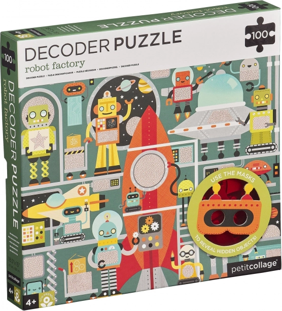 Après avoir assemblé le puzzle, mettez le masque et révélez les objets cachés dans l’usine de robots. Les enfants entraînent leur sens de l’observation et leur concentration de manière ludique.