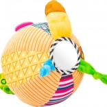 Cette adorable balle chat réunit hochet et jouet moteur en un seul. La variété de tissus, de couleurs et de surfaces invite les petites mains à explorer, tandis que le petit miroir favorise la perception de son propre reflet et la concentration. Après avoir tiré, le jouet vibre agréablement/émet un léger bruit de hochet et capte l’attention de bébé.
