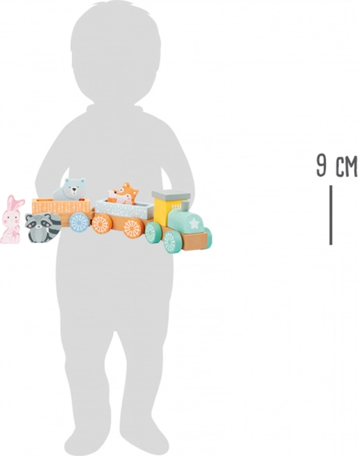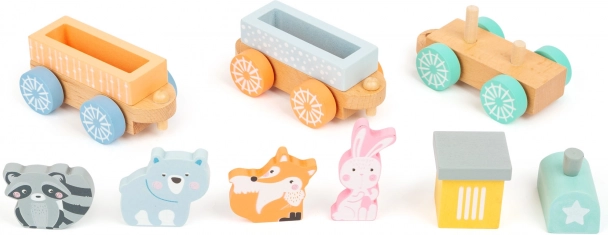 Le train en bois est un excellent divertissement pour les enfants à partir de 18 mois. Ce magnifique ensemble comprend des wagons colorés facilement connectables et quatre figurines d'animaux adorables - renard, lièvre, raton laveur et ours. La locomotive et les wagons sont fabriqués en bois de haute qualité et sont conçus pour être sûrs pour les tout-petits. Grâce aux couleurs pastel et à la structure simple, cet ensemble est idéal pour le développement de l'imagination et des compétences motrices de votre enfant.