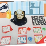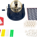 Cet ensemble complet de Bingo apporte tout le nécessaire pour jouer immédiatement : tambour de tirage en métal avec manivelle, boules numérotées, cartons et jetons colorés. Les joueurs marquent progressivement les numéros tirés sur leurs cartons et le premier à former une ligne de cinq cases horizontale, verticale ou diagonale crie « BINGO ! ».