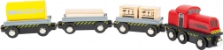 Inclus : 25 éléments de rails, une locomotive avec wagons et des charges. Le set se connecte facilement à la plupart des circuits de trains en bois pour agrandir encore l’univers de jeu.