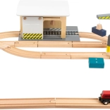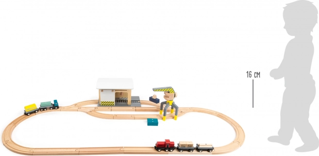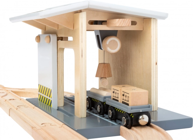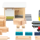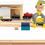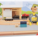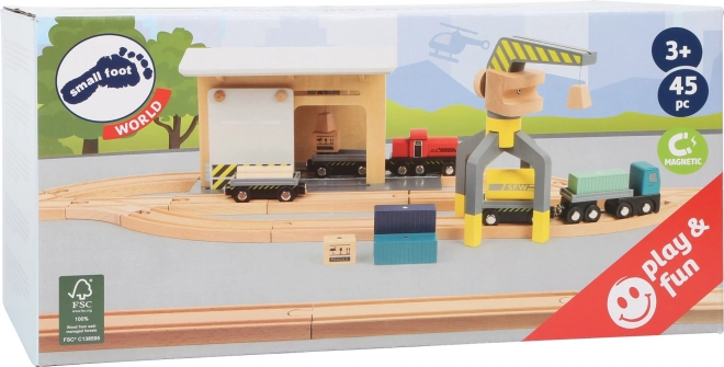 Découvrez un ensemble complet en bois pour petite voie ferrée, entièrement compatible avec les circuits de trains en bois courants. Les enfants apprécieront le chargement réaliste avec la grue, le transport de marchandises et le jeu au dépôt. Le set comprend jusqu’à 44 pièces, dont 25 rails, une grue rotative à 360°, des wagons et cargaisons magnétiques et une paroi coulissante avec poulie. Fabriqué en bois 100 % FSC pour un jeu sûr et durable.