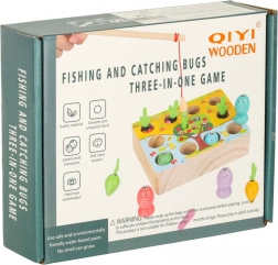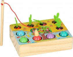 Amusant jeu Montessori en bois permettant aux enfants de « pêcher » et de jardiner à la maison. À l’aide d’une canne à pêche magnétique, ils attrapent des poissons et des vers, et retirent les petites carottes par leurs feuilles en feutrine. Développe la motricité fine, la coordination œil–main, la patience et la précision, l’apprentissage des couleurs et la perception tactile. Fabriqué en bois de qualité avec une peinture sûre et non toxique.