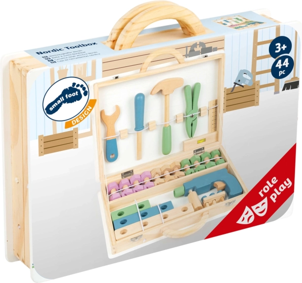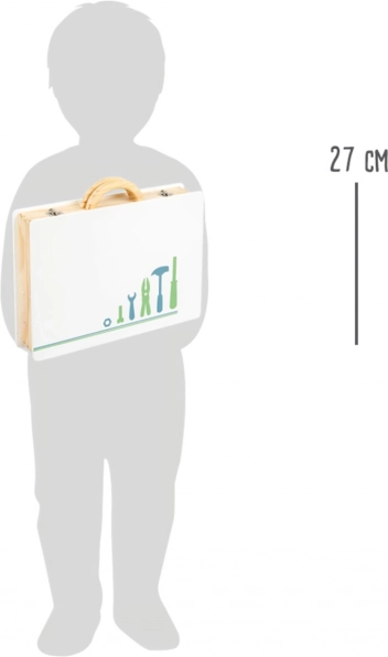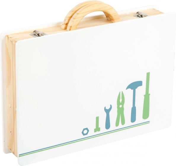 Sa fermeture métallique fiable et sa poignée adaptée aux mains des enfants assurent un transport facile. L’ensemble est fabriqué en combinaison de contreplaqué et de bois massif, offrant une grande durabilité et de nombreux petits plus pratiques. Les enfants peuvent choisir parmi différents motifs : atelier Miniwob et style scandinave Nordic.