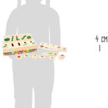 Le design avec le motif apprécié de la Très Affamée Chenille capte immédiatement l’attention des enfants. Les plaquettes et le couvercle sont faciles à manipuler et la construction en bois robuste garantit une longue durée de vie. Après le jeu, fermez simplement avec la bande élastique – rien ne se renverse.