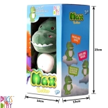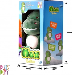 Dinosaure interactif Max vert est un compagnon adorable pour vos enfants, qui est non seulement doux et agréable au toucher, mais qui les aide aussi à apprendre de nouveaux mots et à s'amuser en répétant les mots avec une voix nasillarde.