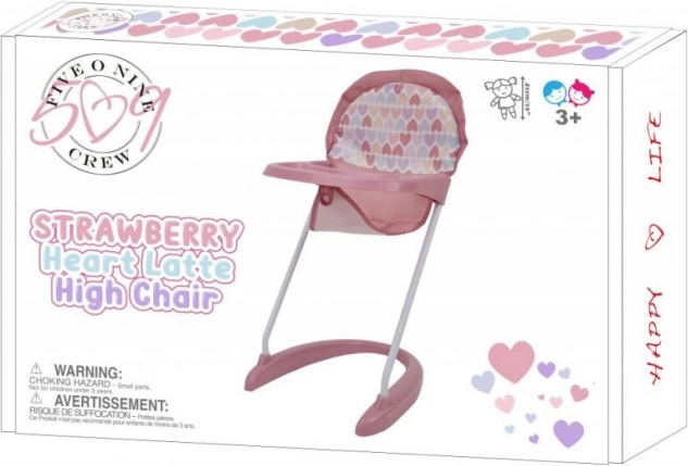 Chaise haute pour poupées avec motif cœur et plateau repas. Stable, montage facile, jouet idéal pour les enfants à partir de 3 ans.