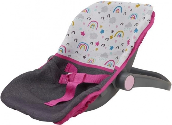 Pratique siège auto pour poupée au motif arc‑en‑ciel, facilement transformable en chaise haute. Idéal pour des poupées jusqu’à env. 41 cm et pour les enfants dès 3 ans. Fonction 2‑en‑1, manipulation facile et jeu d’imitation de soin qui développe l’imagination et la motricité fine.