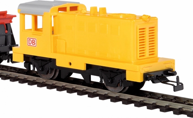 La locomotive diesel jaune avec commande analogique simple est robuste et fiable, adaptée à un jeu quotidien.