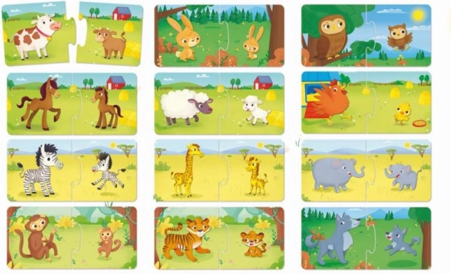 CAROTINA de la société LISCIANI propose un jeu simple et ludique qui apprend aux plus petits à reconnaître les relations entre les mamans animaux et leurs petits. Les enfants constituent les bonnes paires tout en entraînant naturellement leur raisonnement logique, la coordination œil–main et leur vocabulaire.