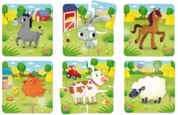 - 6 images sur le thème de la ferme composées de 24 grandes pièces – idéal pour les premiers assemblages.