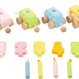 Petit train d’anniversaire en bois avec chiffres et bougies