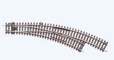 Aiguillage courbe Piko avec reproduction détaillée des traverses en bois et des couleurs fidèles. Cet aiguillage combine une paire de courbes de 30° R3 et R2 pour une déviation à droite et peut être actionné manuellement ou via une commande à distance.
