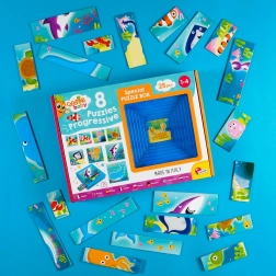 Les puzzles progressifs CAROTINA Baby apportent aux enfants la joie d’assembler dès les tout premiers essais. Chacun des 8 puzzles possède un nombre de pièces différent et augmente progressivement la difficulté, permettant à l’enfant de développer ses compétences naturellement, sans frustration. Les illustrations thématiques du monde marin encouragent l’exploration et le jeu.