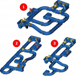 • 2 pompes et une chambre, connectée à un canal avec une inclinaison importante, la longueur totale est de 175 cm.