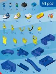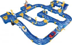 Comprend des barrages, une roue à eau, un port et des pompes pour des jeux d'eau variés.