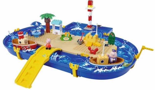 Grâce aux larges canaux et au port, ce jeu est idéal pour des jeux remplis de fantaisie à thème aquatique.