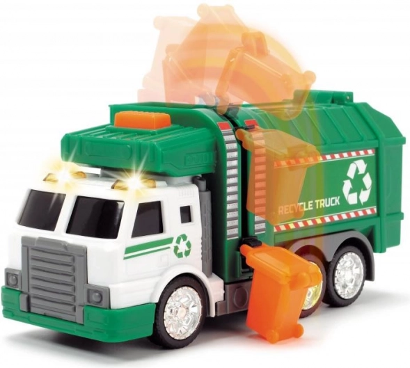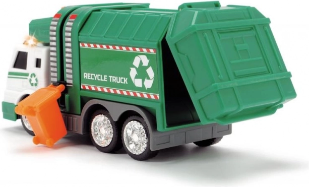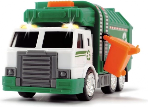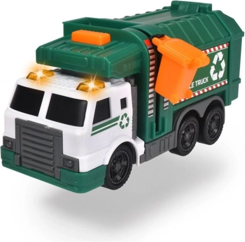 Découvrez un jeu réaliste avec ce camion poubelle compact de 15 cm de long. Les enfants adoreront les effets lumineux et sonores qui rendent le jeu authentique, ainsi que les éléments mobiles qui permettent de charger et décharger les déchets. Une poubelle est incluse pour une action de collecte complète.