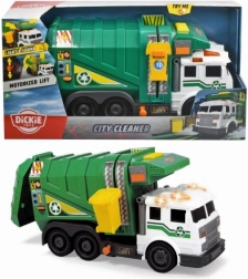 Le camion poubelle de 39 cm de long est l'outil idéal pour les enfants souhaitant découvrir le monde du recyclage. Ce modèle vert et blanc est doté de symboles de recyclage et d'éclairage pour imiter fidèlement les véhicules réels. Les effets sonores et lumineux enrichissent chaque jeu et stimulent l'imagination.