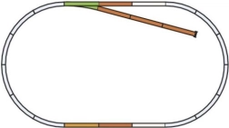 - Voie droite G239 (1×), voie droite G231 avec connexion pour borne d’alimentation (5×), aiguillage WR simple droit G239/R9 (1×), heurtoir de voie (1×)