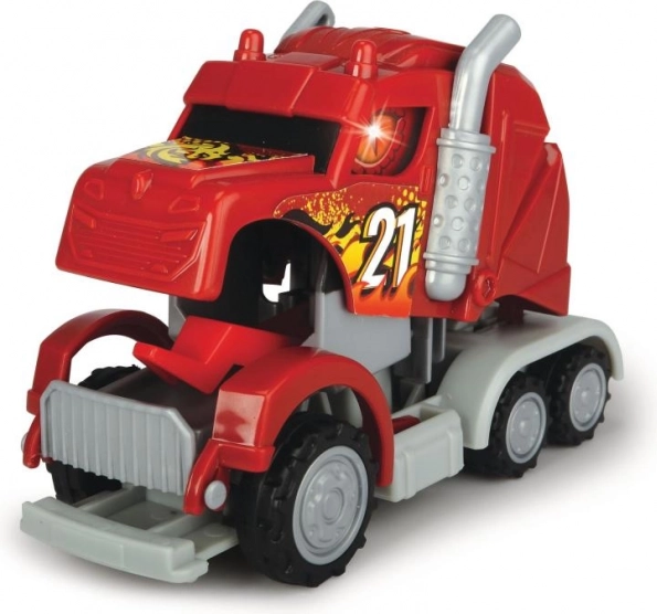 La cabine du tracteur se transforme en dragon en un instant, tracteur à rétrofriction, avec effet sonore et lumière clignotante. 3 modèles – rouge, bleu ou vert. Taille : 12,5 cm.