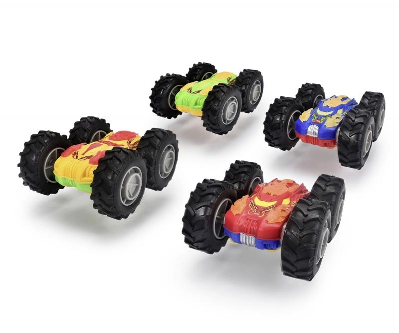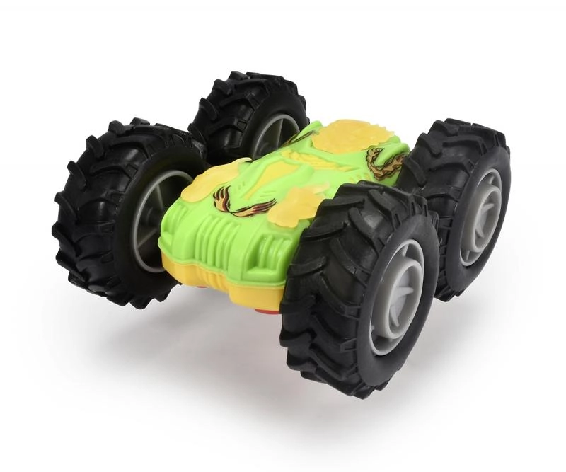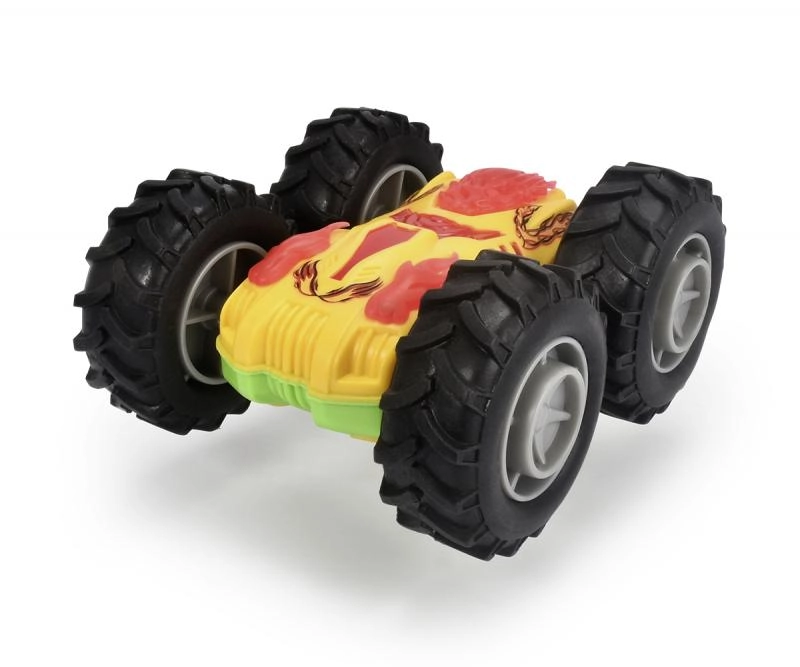 Voiture à friction avec grandes roues et fonction de retournement. Longueur env. 10 cm.