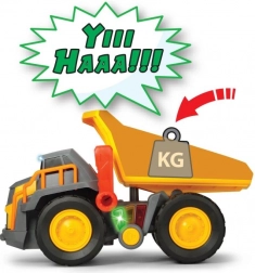 Les enfants peuvent utiliser diverses fonctions du véhicule, y compris une benne mobile et des réactions aux charges avec lumières pour un jeu interactif.
