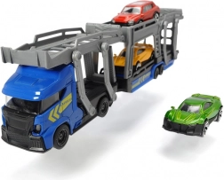 Ce porte-voitures finement détaillé offre un jeu réaliste, du camion en plastique robuste jusqu’aux voitures en métal à roues libres. Grâce à la rampe de chargement mobile, les enfants chargent et déchargent facilement les trois voitures et peuvent inventer leurs propres histoires de circulation.