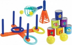 Profitez de l'amusement avec l'Ensemble de jeux 3 en 1, qui comprend trois jeux populaires pour l'intérieur et l'extérieur : attraper la balle, les anneaux sur la croix et renverser les boîtes. Fabriqué en plastiques durables en France.
