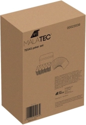 boîte : fer étamé ; cartes : papier ; tapis de jeu : polyester ; jetons : PP ; support à jetons : PP