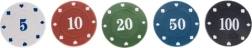 Jetons colorés de valeurs 5–100 et au poids agréable d’environ 4 g, faciles à mélanger et offrant une sensation de jeu authentique.