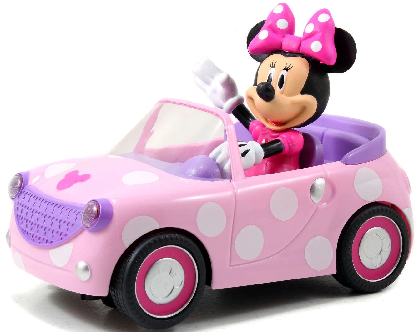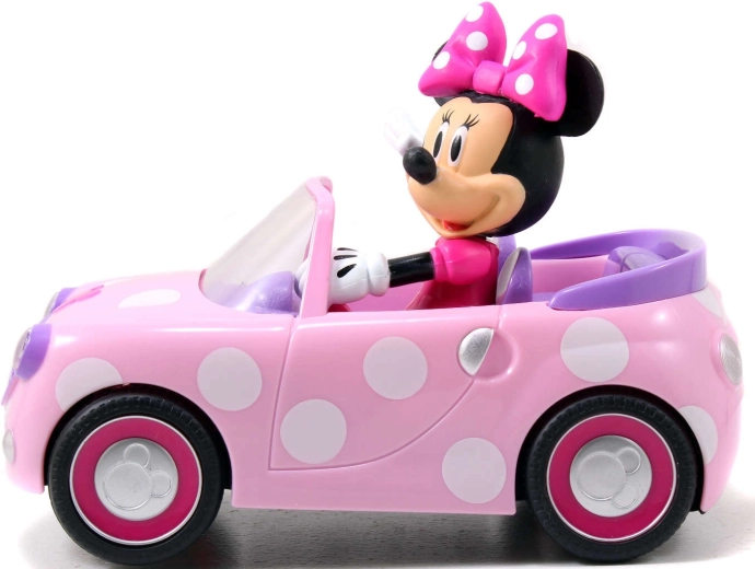 Cabriolet rose à pois avec figurine MINNIE MOUSE solidement intégrée, stimulant l’imagination et le jeu thématique.