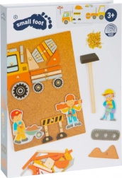 Découvrez un jeu de clouage ludique avec planche en liège, pièces en bois et petit marteau, qui développe l’imagination et les compétences des enfants. Les enfants composent leur propre chantier ou une scène de transport à partir des pièces et la fixent avec des punaises. Des modèles illustrés pour l’inspiration sont inclus, le tout rangé dans une boîte pratique. Favorise la créativité, la motricité fine et la concentration.