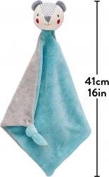 Couverture en peluche extra douce avec la tête d’un ourson souriant. Un accessoire parfait pour la sieste de l’après‑midi. Les motifs et couleurs contrastés de l’ourson stimulent le développement sensoriel des enfants, tandis que le petit nœud sur le coin de la couverture peut être tenu ou mâchouillé.