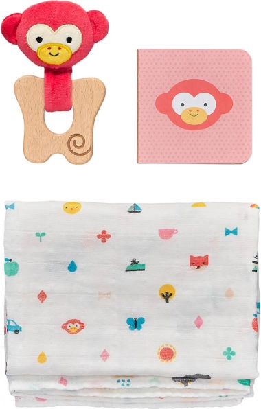 Vous cherchez un cadeau tendre et utile pour de jeunes parents ? Le coffret cadeau pour bébé singe PETIT COLLAGE combine des matériaux naturels de qualité, une sélection de produits réfléchie et un design ludique. Grâce au bois certifié et au coton biologique, il est doux pour la peau délicate de bébé et pour l’environnement.