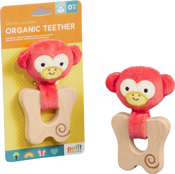 Adorable anneau de dentition Petit Collage en forme de singe, combinant coton biologique doux et bois de hêtre FSC robuste pour un mâchouillage sûr et apaisant. Grâce à sa prise en main facile pour les petites mains, il est idéal dès la naissance et aide lors de l’apparition des premières dents. Conçu dans le respect de la nature – sans emballage plastique et avec un rembourrage en matériaux recyclés.