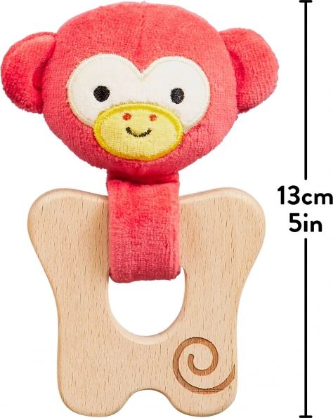 L’anneau de dentition avec la tête d’un joyeux petit singe apporte réconfort et divertissement. La partie textile en coton biologique est agréable au toucher, l’anneau en bois de hêtre certifié FSC est lisse et durable. Sa forme ergonomique favorise le développement de la motricité fine et une prise sûre.