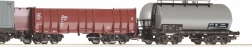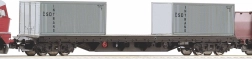 La rame comprend des plats porte-conteneurs, un wagon ouvert et une citerne pour un fret mixte authentique et des compositions variables.